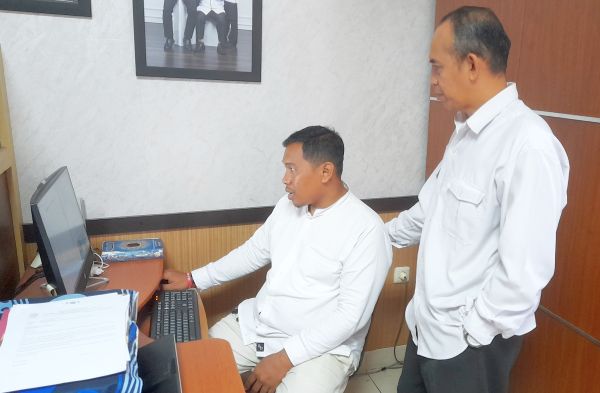 Staf sekretariat Fraksi PKS, Deni Fajar Rohadi dan Nurdin Koswara, sedang mengelola data. (Foto: im)